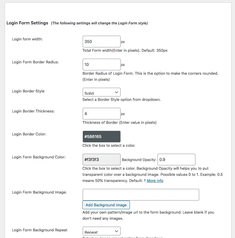 - Login Form Background Color: