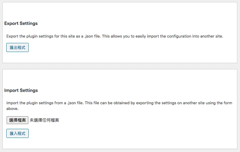 這個外掛不但完全免費,而且還佛心來著,有匯出匯入設定的功能。意思是說,如果你有多個網站要設定,那麼只需要將目前的成果匯出,保留起來。
