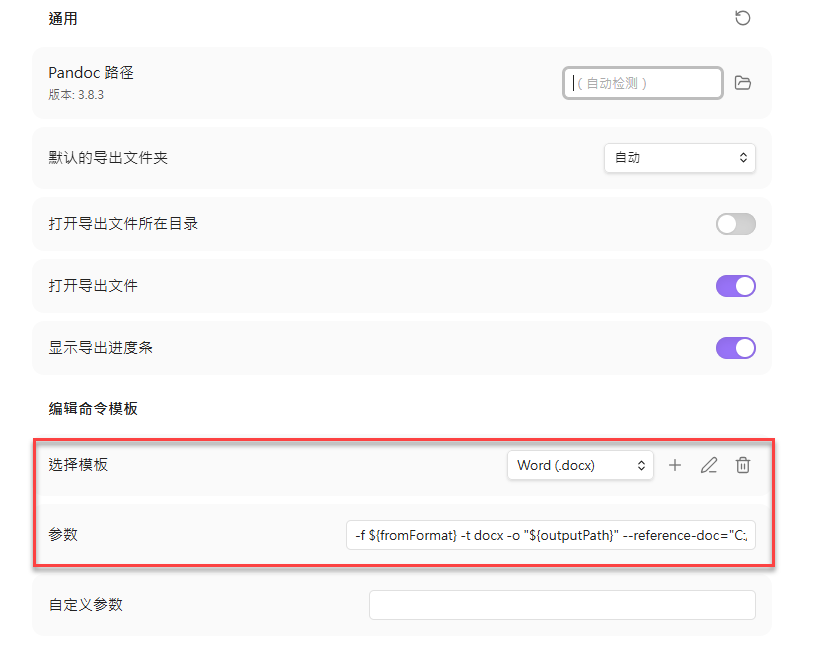 -f ${fromFormat} -t docx -o "${outputPath}" --reference-doc="C:/output/template.docx"